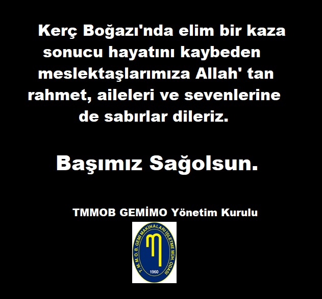 Kerç Boğazında elim bir kaza sonucu hayatını kaybeden meslektaşlarımıza Allah' tan rahmet, aileleri ve sevenlerine de sabırlar dileriz. Başımız Sağolsun.
